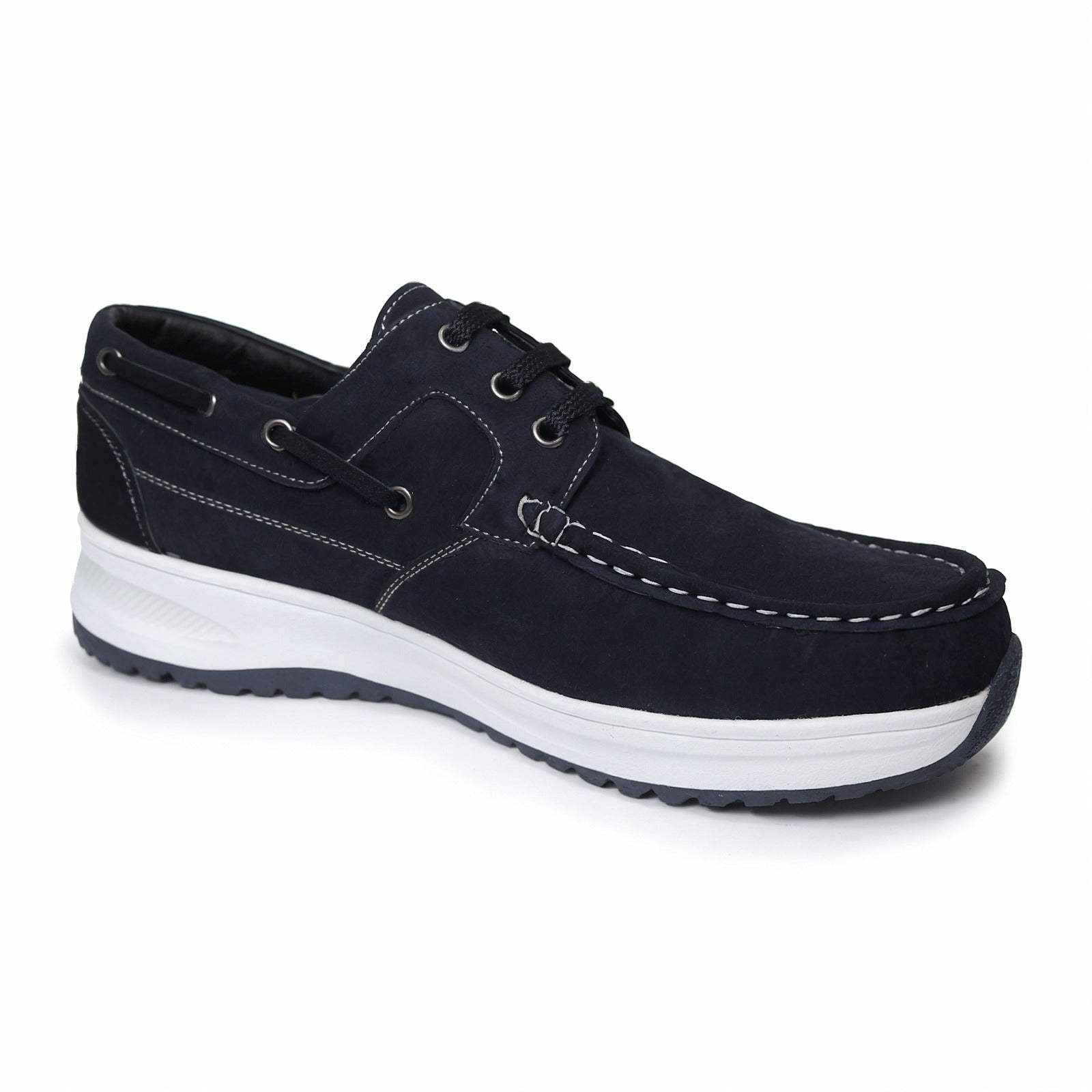 Step into comfort and style with these affordable Top-Cruiser coastal-inspired loafers for men. Perfect for casual outings, these shoes feature a classic moc-toe design with contrast stitching and traditional boat shoe lacing. The synthetic leather upper provides durability while the mesh lining ensures breathability. The robust PVC outsole offers grip, and adds a modern sporty touch to the traditional boat shoe silhouette. Whether you're strolling along the beach, running errands around town, or simply relaxing at home, these affordable boat shoes deliver both comfort and casual sophistication. Their versatile design pairs well with shorts, jeans, or casual trousers, making them a practical addition to any casual wardrobe.